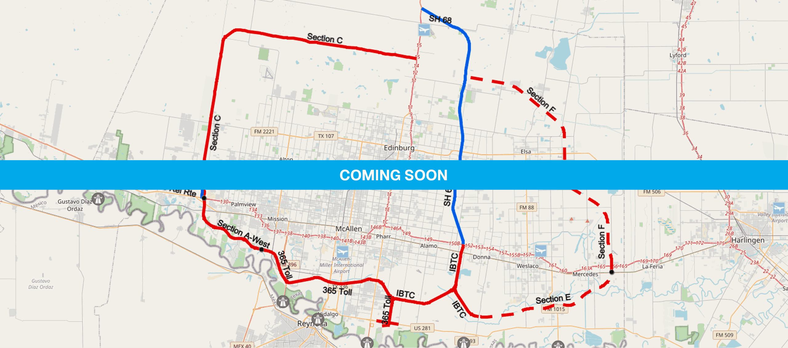 The Hidalgo County Regional Mobility Authority (HCRMA) is constructing the proposed 365 Tollway, a critical transportation project designed to enhance mobility, improve safety, and support international trade across the region. The project will construct a 12.2 mile controlled-access toll facility providing an alternate east–west route parallel to IH-2, including 13 interchanges, a floodway bridge levee relocations and frontage roads in select locations, aiming to reduce congestion and improving freight movement. Once complete, the SH 365 Tollway will connect key international ports of entry, including the Anzaldúas and Pharr-Reynosa International Bridges, and link with future projects such as the International Bridge Trade Corridor (IBTC) and 365 Tollway Phase III. This strategic investment will strengthen regional infrastructure, facilitate efficient cross-border commerce, and provide long-term economic benefits to Hidalgo County and the surrounding communities.